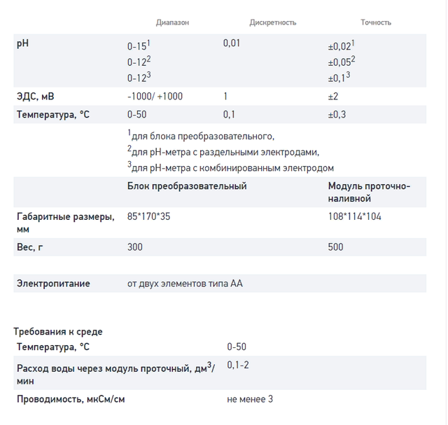 Измерение активности ионов водорода (pH, pH25), ЭДС и температуры водных сред.